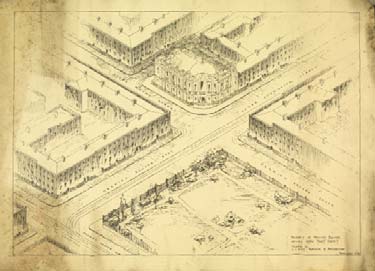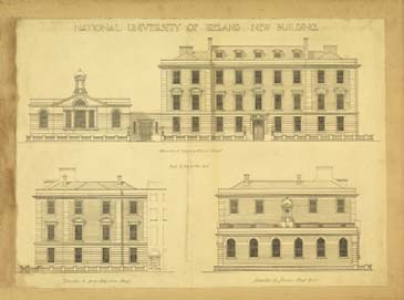On its foundation, the National University of Ireland took over the buildings of the Royal University in Earlsfort Terrace. In 1909, the Senate agreed to a request from University College Dublin to make part of the building available to the College1 and before long the logic of UCD taking over the whole of the Earlsfort Terrace building became apparent and ownership was transferred to the College2. Nos. 48 and 49 Merrion Square were rented for the National University of Ireland and the University relocated there in 19123. Initially this was intended as a temporary address and premises were acquired in Upper Mount Street (nos. 55 to 62) and in Lower Fitzwilliam Street (nos. 29 and 30) in 1914. Elaborate plans for a university building were prepared and a competition for the design of extensive new premises on this site was instituted, with Mr Charles J. McCarthy, City Architect, as the Assessor4. The scale of the |