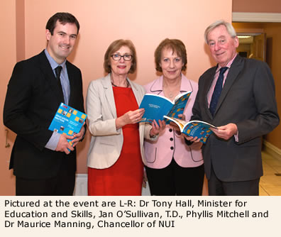 The Minister for Education and Skills, Jan O’Sullivan launched the Education Matters Yearbook, last night in the NUI. Speaking at the event, Dr Maurice Manning, Chancellor of the University said "At a system level, there is much that we can be proud of. The significant advances in research across a broad range of disciplines, the increasing investment by major transnational companies attracted by the high standard of our graduates, improvements in our PISA performance, are all a product of a multi-layered structure, with myriad professional inputs, that combines - highly effectively - to deliver continuously improving educational outcomes and achievements throughout our society.