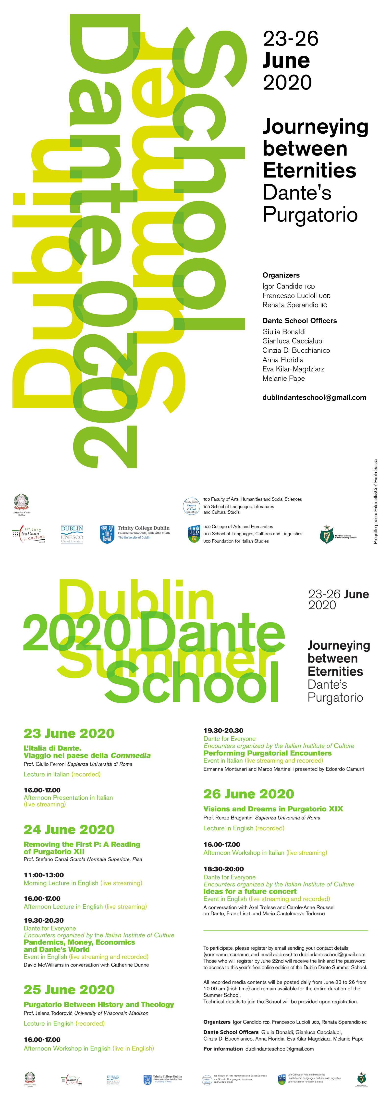 NUI congratulates the UCD School of Languages, Cultures and Linguistics, TCD and the Italian Institute of Culture on the success of the 2020 Dublin Dante Summer School.