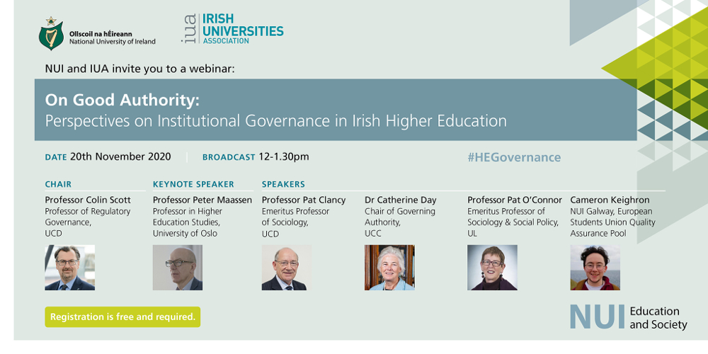 Please join us for a webinar we have organised in collaboration with the Irish Universities Association (IUA) from 12-1.30pm on Friday, 20 November, on governance in higher education.