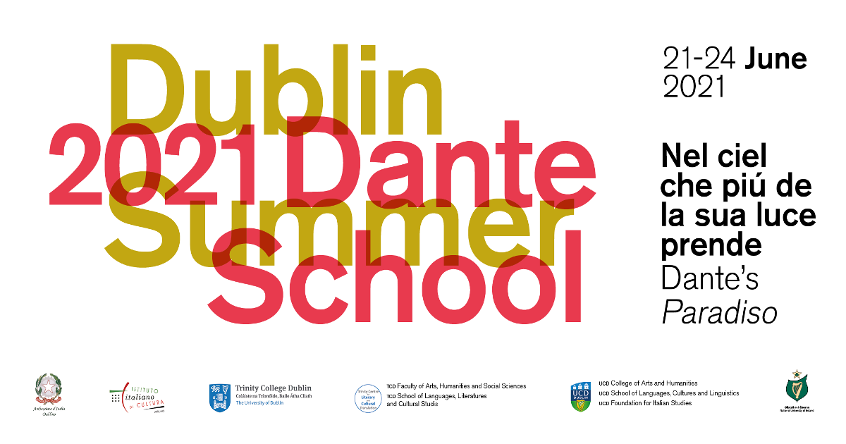 In the year that marks the 700th anniversary of Dante’s death, we are delighted to announce the launch of the third edition of the Dublin Dante Summer School. The project has received collaboration and support from the Italian Embassy in Dublin, the National University of Ireland, TCD Faculty of Arts, Humanities and Social Sciences, TCD School of Languages, Literatures and Cultural Studies, Trinity Centre for Literary and Cultural Translation, UCD College of Arts and Humanities, UCD School of Languages, Cultures and Linguistics, The UCD Foundation for Italian Studies.