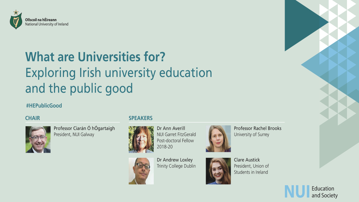 On Friday, 8 October 2021, the National University of Ireland (NUI) hosted the fifth event in the NUI Education and Society Series online, What are Universities for? Exploring Irish university education and the public good.